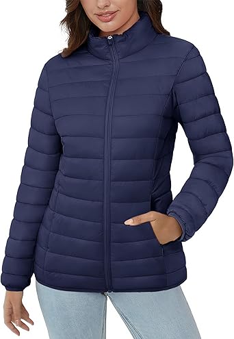 Women's Puffer Jacket Lightweight Quilted Padded 4 Pockets Zip-up Stand-collar Winter Fleece Coat
