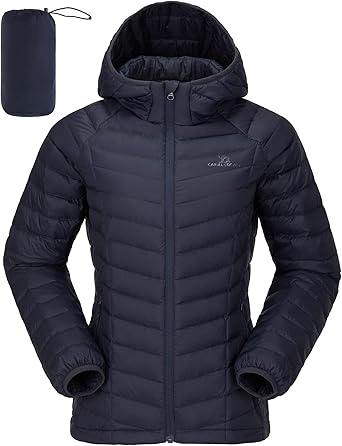 Women's Down Jacket Hooded Winter Light Weight Short Puffer Coats Packable Warm Windproof Ladies Parka